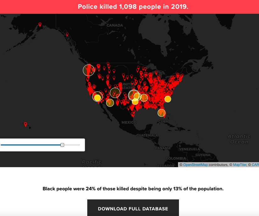 Read MoreINVITATION TO ACTION: Educate yourself! DESCRIPTION: Mapping Police Violence is a research collaborative collecting comprehensive data on police killings nationwide to quantify the impact of police violence in communities. SOURCE: https://mappingpoliceviolence.org/ CONTRIBUTOR: anonymous HASHTAG: #research #data #blacklivesmatter